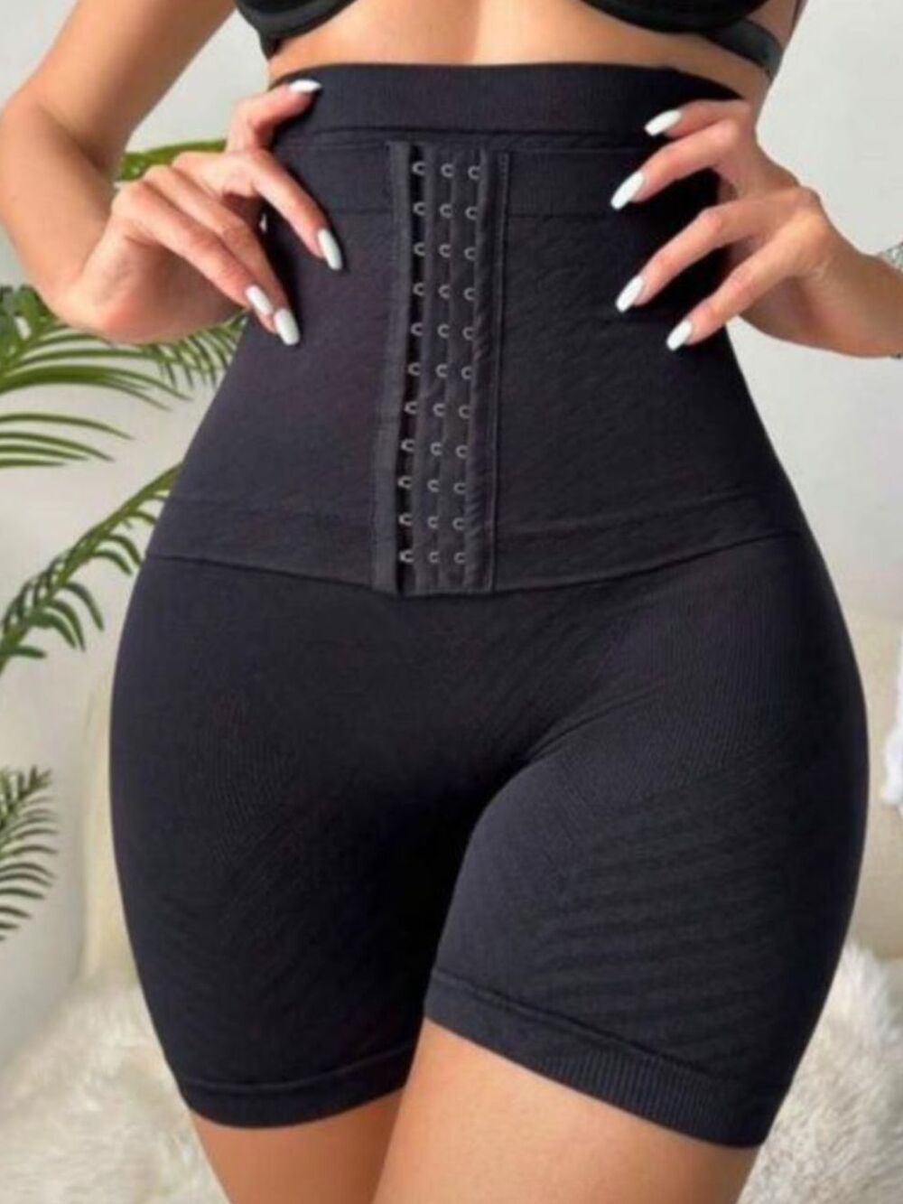 Essa é uma cinta modeladora estilo short, com cintura super alta e fecho frontal de colchetes, que ajuda a comprimir a região do abdômen e definir a cintura. O design alongado até as coxas oferece modelagem uniforme, ajudando a alisar o quadril e evitar marcas sob a roupa.