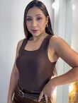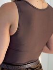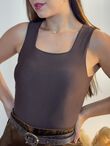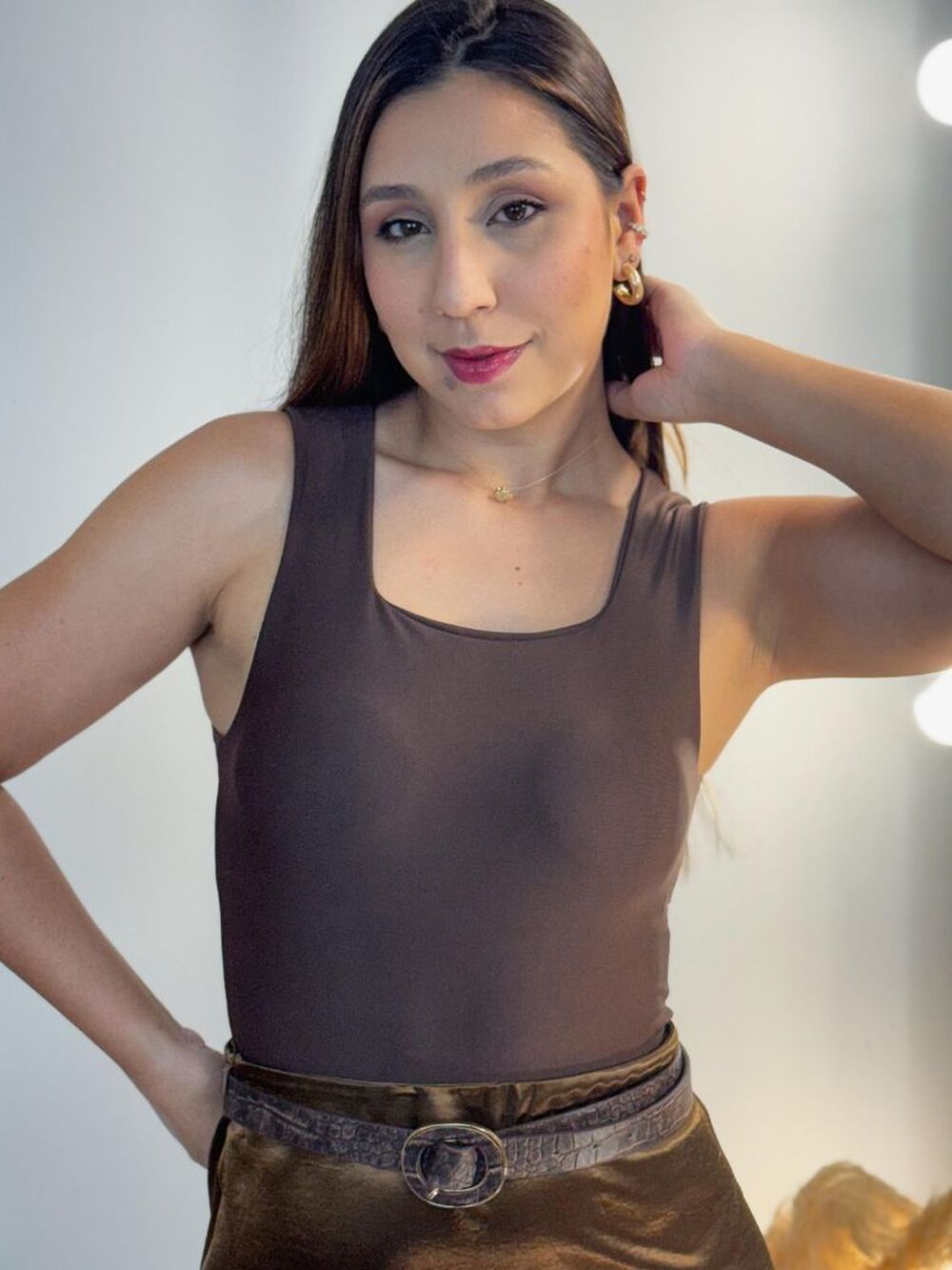 Boddy corte quadrado material de poliester poliamida, com bojo e regulagem embaixo. Modelo regata mais cavado e manga.