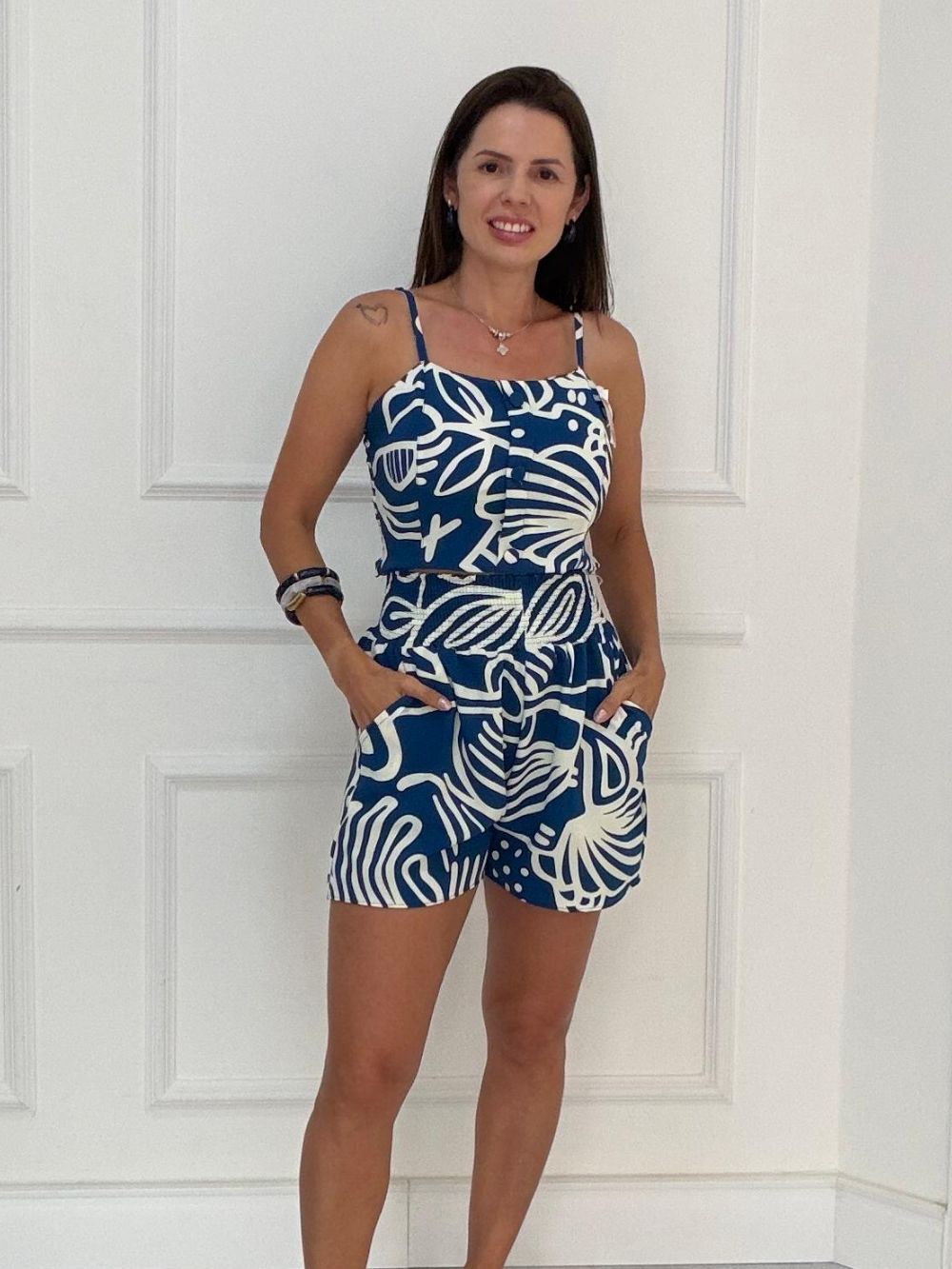 Conjunto de duna cropped com bojo, lastex e regulagem . Veste muito bem, o short tem elástico grosso na cintura o que disfarça bastante a barriga. Nosso campeão de vendas na loja.