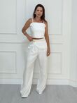 Conjunto de alfaiataria importado. Cropped com regulagem e lastex atrás, tecido duplo para não marcar o peito. calça bem comprida e com detalhe na frente o que disfarça a barriga.