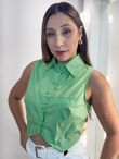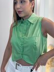 Cropped estilo colete com gola e botões estilo mais curto atrás e bom bico na frente, modelagem grande.