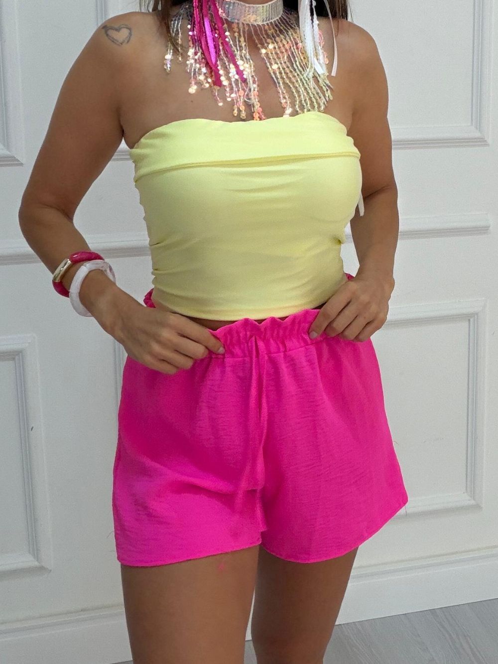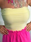 Cropped tomara que caia com bojo de poliamida com poliester estilo blusinha mais comprido.