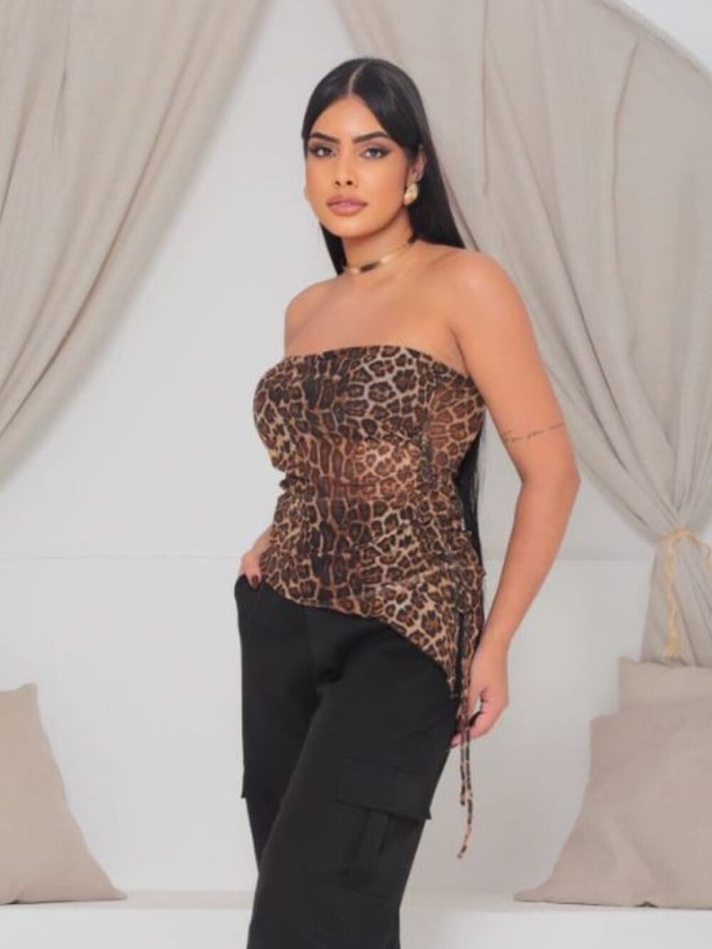 Blusa tomara que caia confeccionada em tule leve e delicado, com bojo embutido para melhor sustentação e conforto. Possui modelagem ajustada ao corpo e leve transparência que garante um toque moderno e sofisticado. O drapeado nas laterais valoriza a silhueta e traz um caimento elegante. Perfeita para compor produções estilosas, do look casual ao mais ousado.