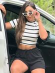 Cós alto e com elástico; Modelagem soltinha; Bolsos laterais.